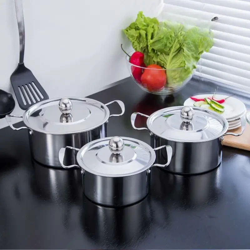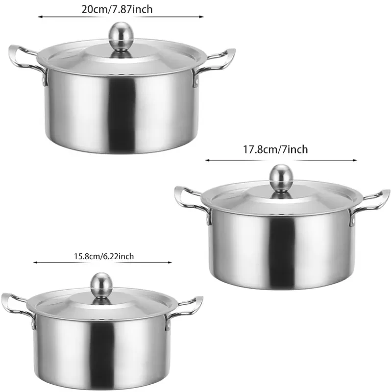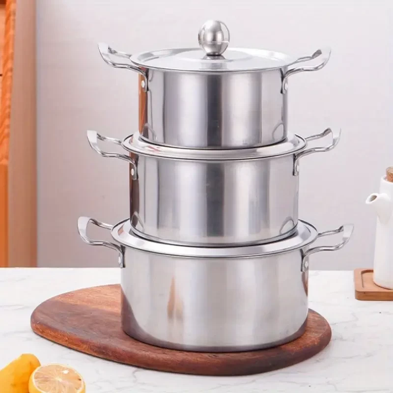 ثلاثة  قطع من وعاء طهي من الفولاذ المقاوم للصدأ مع غطاء