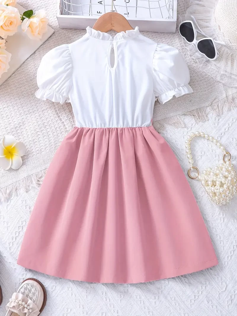 فستان صيفي كرتوني للبنات بأكمام منفوخة وربطة، مثالي للارتداء اليومي