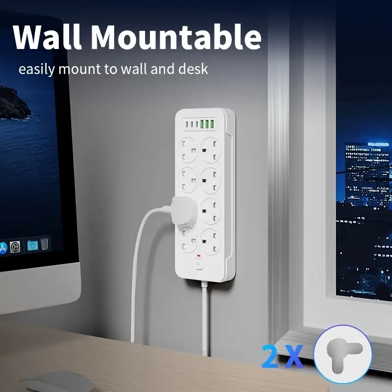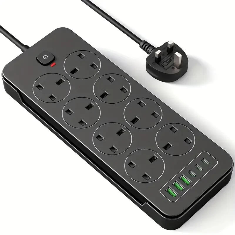 / ثمانية منافذ تيار متردد / USB سلك بطول 2 متر /3250 واط 13 امبير /6 منافذ