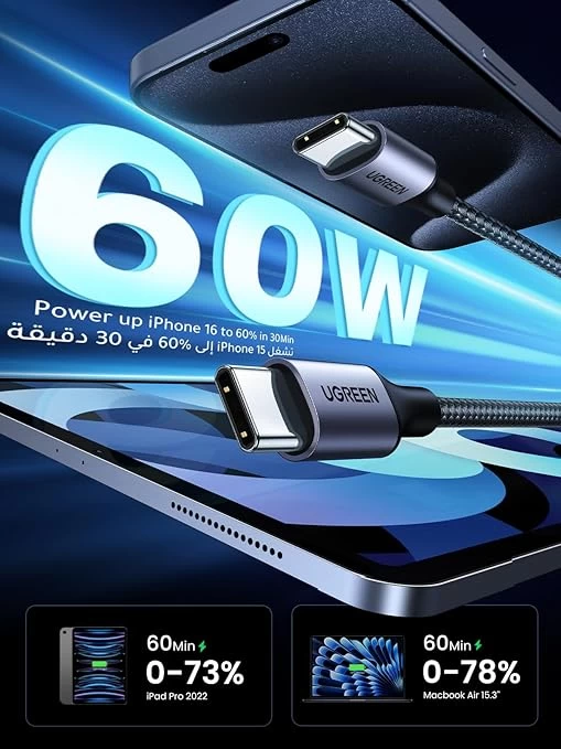 وصلة شاحن تايب سي الى تايب سي 2.0 / طول 1 متر / 60 وات